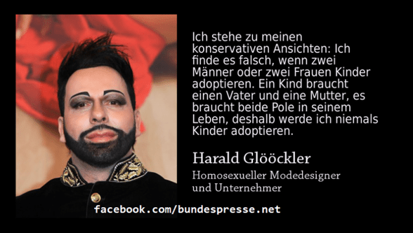Ein schwuler Premier, Abgeordnete, die ihre Homosexsualität ausleben, heiraten, vielleicht Kinder adoptieren wollen. Auch auf die Gefahr hin, wieder als intolerant verschrien zu werden, da bin ich persönlich dagegen. Viele Schwule sagen es selbst: Ein Kind braucht einen Vater und eine Mutter! Siehe Harald Glööckler oder Dolce & Gabbana.