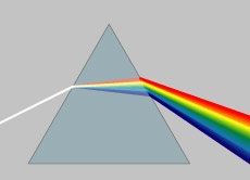 Fällt ein Lichtstrahl auf ein Prisma, wird er gebrochen. Das weiße Licht wird in bunte Spektralfarben – die reinen Farben – zerlegt. (Quelle: Wikipedia)